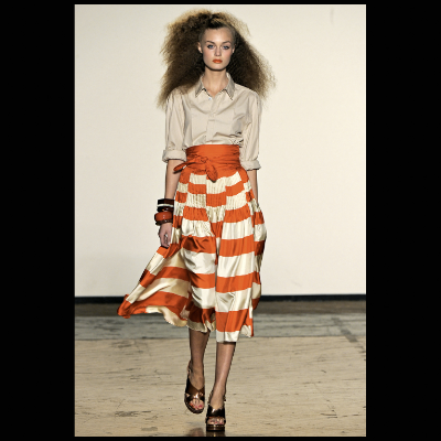 Fifi and Sonny in the red striped skirt and burnt umber jacket