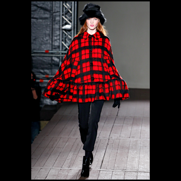 Fifi in the A-line tartan coat and furry hat