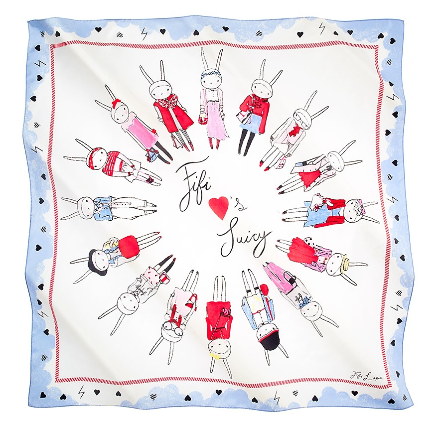The main event has to be the two amazing silk scarves, one featuring a collection of my favorite Valentines day outfits and the other illustrating mine and Sonny's romantic trip around the world especially for juicy.